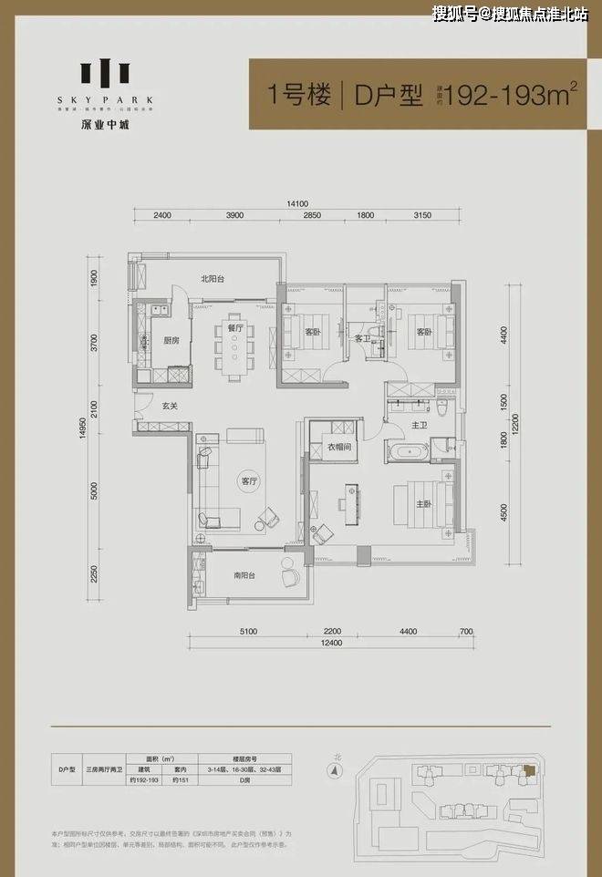 深业中城住宅合计3栋,2/3栋已售,只需看1栋的户型即可。
