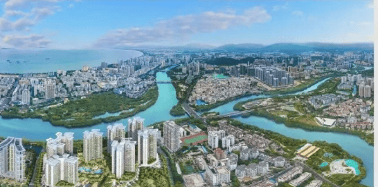 被三亚河与临春河双河环抱,部分户型可推窗瞰海,实现河景、海景与城市景观的融合,景观视野开阔,是三亚市中心稀缺的滨水景观资源。