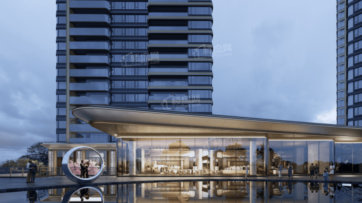 约60米入口界面,承续酒店式归家礼遇,以顶奢酒店为蓝本打造艺术庭院。