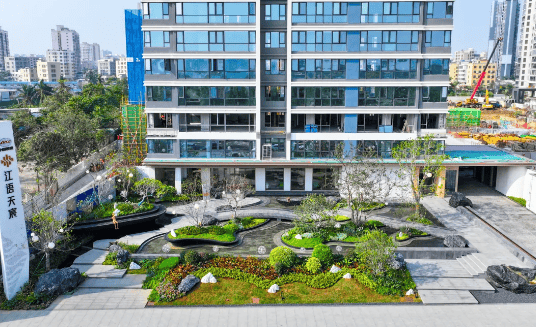 园林景观设计:携手顶尖景观设计团队山水比德,以“江岸森居”为设计理念,打造“四园+两庭+一径”的多重园林景观空间,包括江屿林涧、飞碟聚场、浮光林樾、鹿隐栖谷等特色园林,以及约400米环形生态步道,营造出公园式的居住环境。