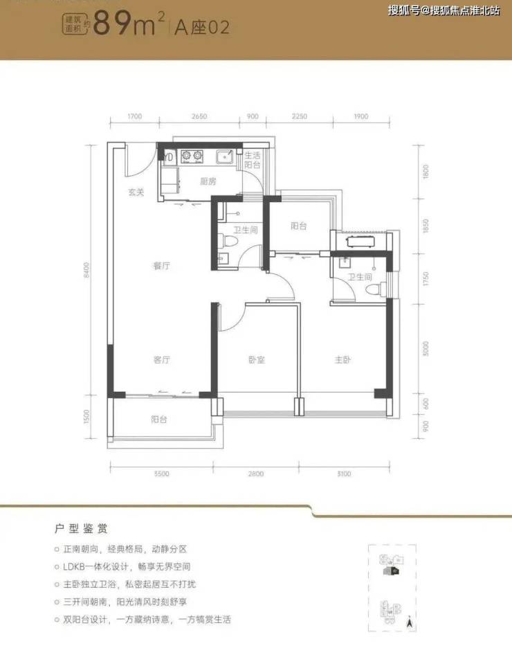 :总价309万起,次卧面宽仅2.5米,需封阳台改造功能性空间;