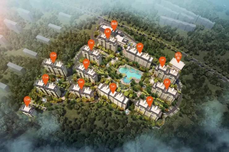 社区配套:东南亚风格园林 + 水系景观,有泳池、健身区、儿童游乐区、慢跑道等