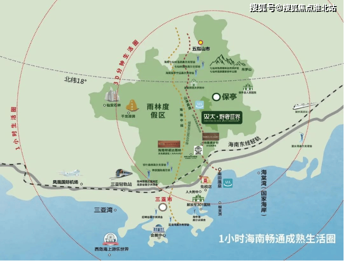 交通配套:自驾方面,毗邻省道 S305,距山海高速入口约 70 公里至三亚,车程 1 小时,至海棠湾 32 公里,25 分钟车程。规划中的海南中线高铁保亭站预计 2025 年试运行,建成后至三亚站仅需 15 分钟,此外,三亚 - 保亭大巴停靠项目附近。