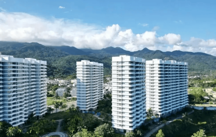 核心指标:总占地约 446 亩,总建面约 14.8 万㎡;容积率0.5(超低密),绿化率约60%;产品分瞰海高层 + 坡地别墅 + 叠拼(十八度院);高层为两梯四户纯板楼,公摊约 20%;人车分流,社区热带园林 + 山顶公园 + 香水河景观带