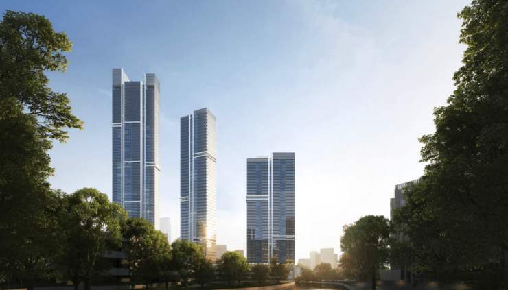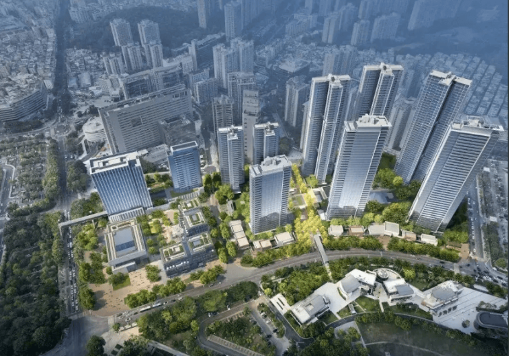 建筑风格:项目由 3 栋 150-233 米超高层组成,外立面采用玻璃幕墙与铝板,借鉴深圳湾 1 号的设计理念,外观现代大气,极具辨识度。