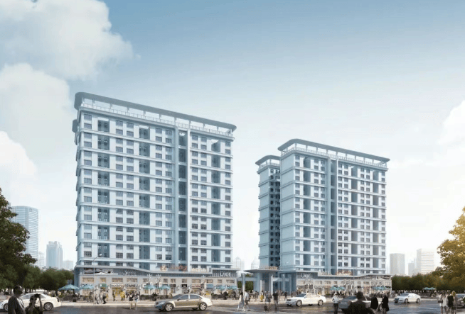 建筑特色:一期在建 5 栋围合式花园商办小高层,中庭打造近 5500 平方米热带度假风格园林。户型为 55-70㎡百变空间,层高 5.4 米,采用工字型外廊设计,户户通风采光。