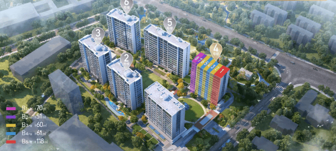 产品信息:4 号楼为 29 层高层,两梯四户设计,共 116 套住宅,户型从 51㎡一房到 118㎡三房不等,全装修交付