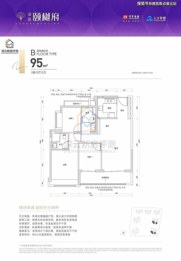 「深业颐樾府」整个项目包含4栋住宅 + 3栋保障房,带一个幼儿园,车位共1400个。其中住宅楼为32-45-46F高层和超高层建筑,本次只推售5栋,为46F超高层3梯6户。