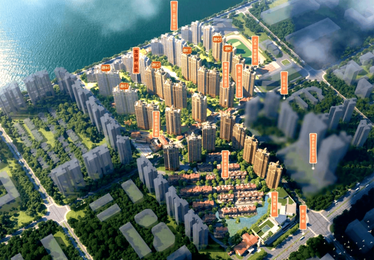 建筑规划:整体项目共分三期开发,一期是加州阳光别墅区,基本售罄;二期是湖畔美景高层区,目前在售;三期是都市生活综合区,规划建设 7 万㎡大型商业综合体,与现有的家和城广场互通,将升级为 10 万㎡的都市综合体 2.0 版本。建筑风格为 Art-Deco 风格,由梁志天设计集团旗下品牌思路设计。