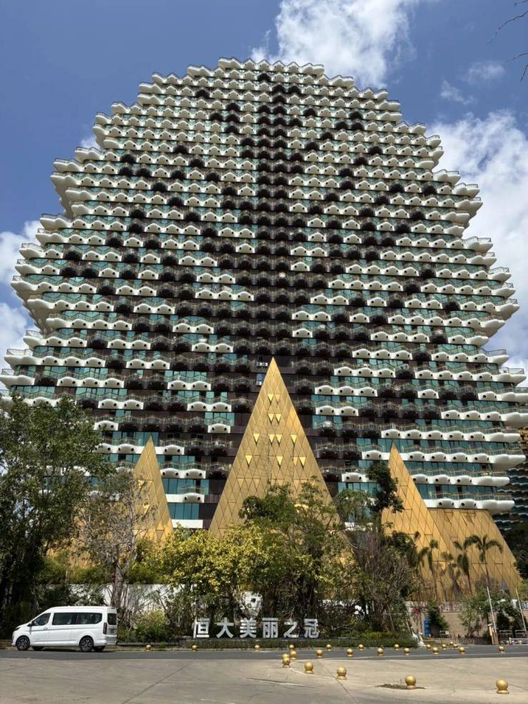 三亚恒大美丽之冠始建于2003年,定位“世界级酒店群”。是三亚标志性地标,由九栋形似大树的百米高楼组成。