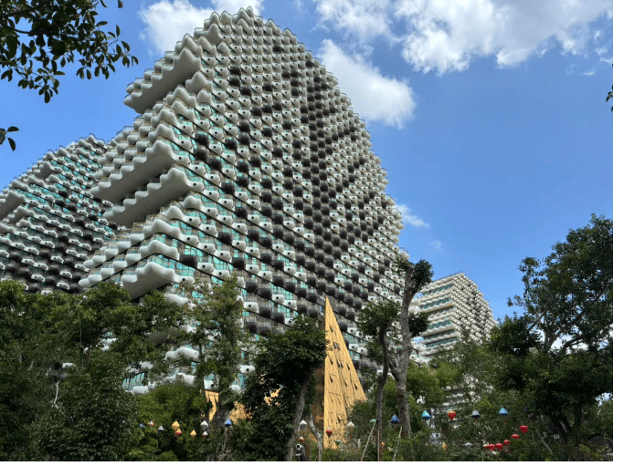 九栋楼模仿大树形态,玻璃幕墙拼出“树皮”纹理,融入海南对“大树”的生命崇拜,呼应三亚生态城市形象。
