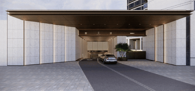 松湖润府外立面,大手笔运用高屏占比LOW-E玻璃,搭配峻挺质感金属线脚,延续润系的高端。松湖润府的门楼宽度更是达到了约63.99米,非常震撼大气,这种尺度的在东莞很难找到第二个。