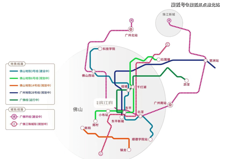 双城轨:广佛环线(在建中)、广佛江珠城轨(规划中)