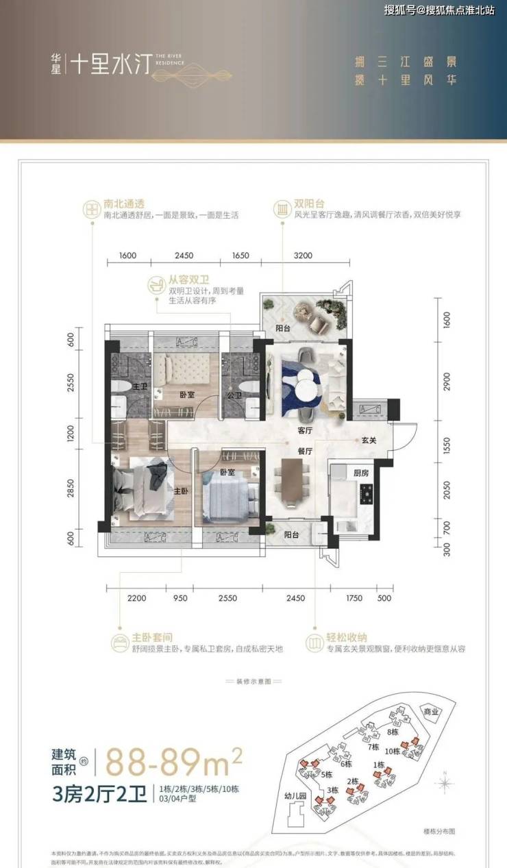 • 空运——惠州平潭机场:约30公里【城熟醇熟】[ 全系优配 360°城芯悦活 ] 3.9公里直达区政府,近揽惠阳中心商圈七大商超环伺;惠州第六人医、惠阳中医医院、三和医院近在咫尺,健康有“医”靠。自有幼儿园,划分片区九年一贯制公立惠阳竹贤学校,实现一站式教育。【华星实业】[ 本土品牌 深耕三十余载 ]惠州市惠阳华星实业有限公司成立于1992年,深耕房地产行业超30载,迄今已精心打造了华星金碧雅苑、华星大厦、华星雅苑、碧翠园、华星金碧蓝湾、华星金融国际、云水佳苑等精品项目,以产品创新、品质领先深得市场认可。【水岸人居】[ 十里水汀 岸呈人居风华 ]项目由8栋住宅和1栋集中商业、1栋幼儿园围合式布局构成,营造外揽三江盛景,内瞰中央园林的独特景观视野。以现代化大幕墙的先锋设计,构筑一道三江水岸独有的城市天际线。【精雕园景】[ 内外皆景 自然康乐生态 ]项目特设入口水景和中央园景,配置阳光剧场、会客廊厅、休闲木平台等空间。围绕小区的环跑道,让运动唤醒活力;全龄化活动区让孩子快乐成长;户外吧台、邻里花园里悠然会客;每一位家人,都有专属的风景。【江景头排】[ 奢阔贵邸 匠心揽境人居 ]项目户型覆盖77-119㎡三至四房。南向三开间的人性化设计,南北通透双阳台,兼顾景观与生活;更有区域唯一L形阳台奢宅大户,6.6+4.4的奢阔尺度,构建出270°IMAX级广角江景生活。