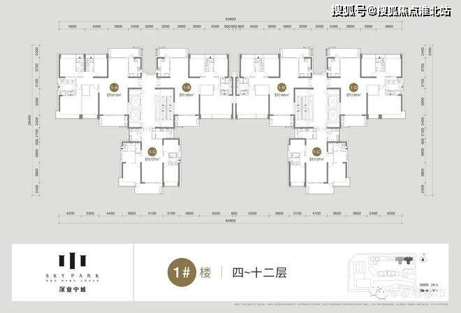 深业中城住宅合计3栋,2/3栋已售,只需看1栋的户型即可。