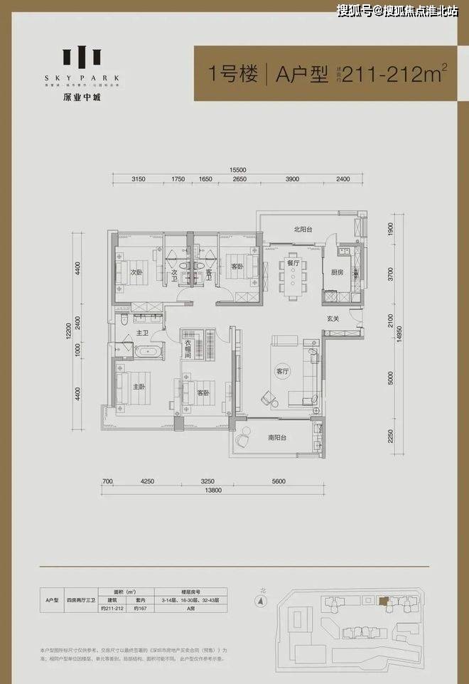 1栋住宅,共222套,产品是面积段为212㎡的4房、137㎡、185㎡、192㎡的3房,以及4套300㎡以上的顶层复式单位,毛坯出售,是总层数45层的超高层板楼单位,其中36层及以下为2梯3户品字形结构,37层及以上为2梯2户的板楼结构,南北通透前后无遮挡,直面一线香蜜公园景观。