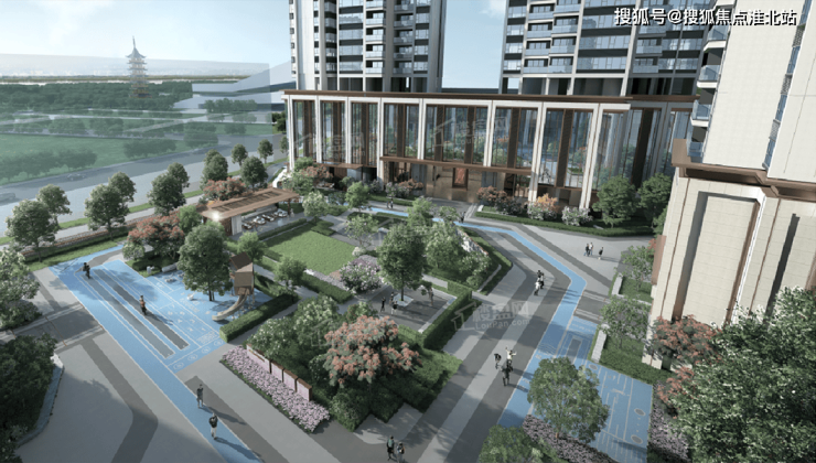 首先,项目采用“新中式合院”设计,还进行了30度楼体扭转,以此实现更宽敞的楼间距,更开阔的景观视野,更好的通风和采光。