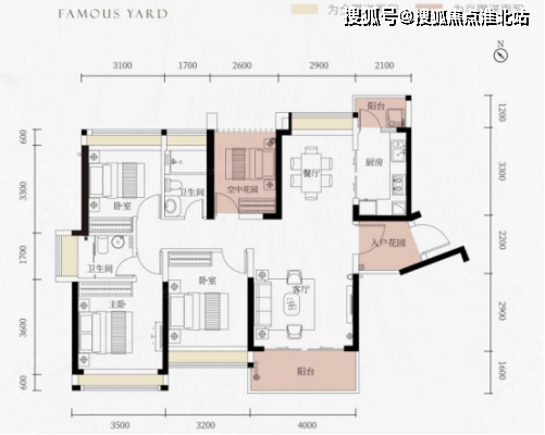 面积段:97-125㎡3至4房