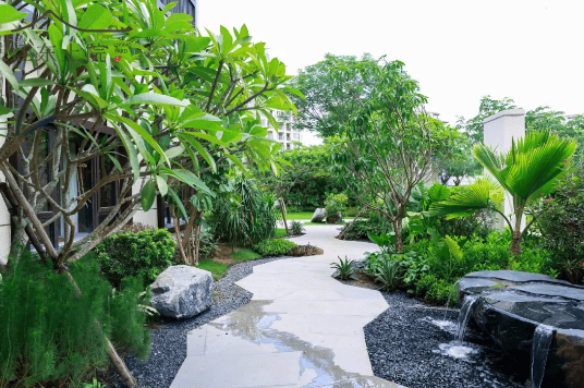 东方园林景观:以三晋大院为蓝本,传承300年营造技艺,打造“三进归家”礼序和“五重景观”(寻山、撷水、觅林、问阁、携趣),融合中式风雅与海南地域文化,营造诗意栖居氛围。