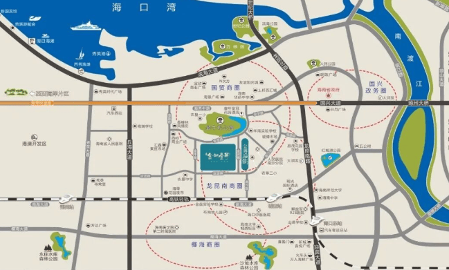 周边配套:交通方面,周边直线 1km 内有 17 个公交站,距离最近的农垦机械厂站仅有 158m,交通便利。教育方面,直线 3km 范围内有 154 个幼儿园、13 个小学、22 个中学,教育资源丰富。医疗方面,直线 3km 范围内有 18 个一级及以上医院,如海南省人民医院南沙分院距离楼盘 668m,医疗配套完善。商业方面,周边 3km 范围内有 32 个商场,包括王府井海垦广场、龙湖海南海口天街等,满足日常购物需求。