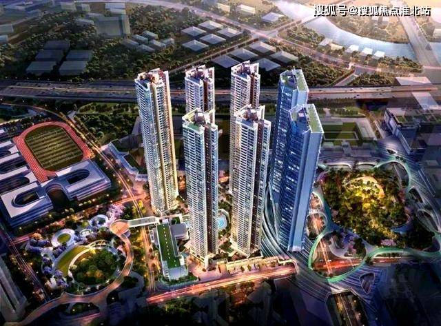楼栋规划:共由 5 栋 58-59 层高住宅、1 栋 35 层写字楼、1 所 18 班幼儿园组成,配建有公交首末站。