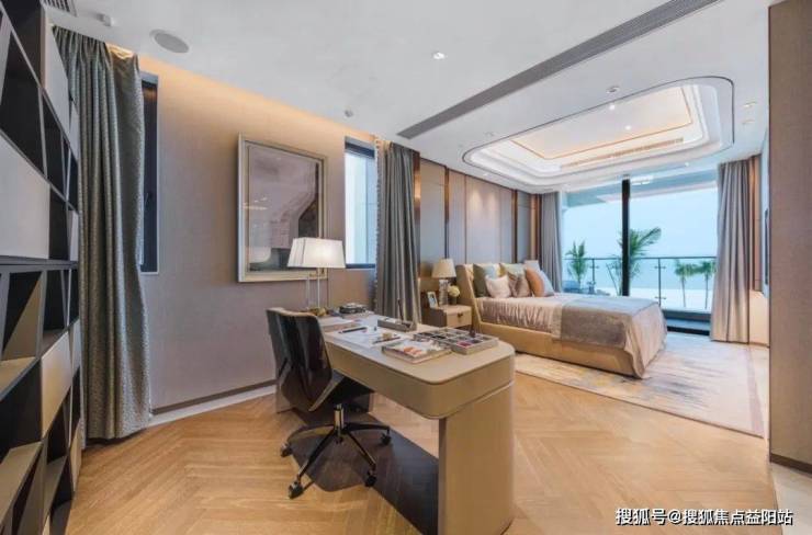 有别于对公共空间的开阔设计,长滩别院二、三层私密生活空间处理得各具特色,略加修饰变得丰富而精彩。二层次主卧带景观阳台,将海景一览无余。次主卧与书房连通,舒适宽敞、通风。空间选用温馨典雅的ALBERTA家居,优质的面料呈现出典雅的质感,经典软皮革形式和线条,与全景式落地窗展示的户外无缝连接。珠宝水晶石精心地摆放,精致浪漫的生活情调跃然而出。
