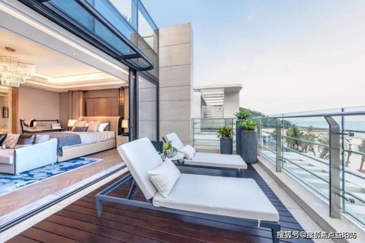 景观台是主卧的一大亮点,精心考量设计后,改造成小型休闲区,并最大化将山海美景尽纳眼底。你可以想象,在这里伴着星空入梦,听着海浪入眠;晨起开窗远眺,蓝绿色大海与珍珠白沙滩一同入眼;或是闲暇时,躺在沙滩椅,来个日光浴,阳光被轻易捕捉;又或是夜幕降临,看华灯初上点缀城市的海岸线,海风轻拂,与身边人轻语。
