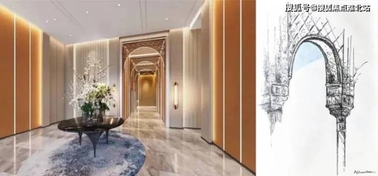 源自西班牙阿尔罕布拉宫的灵感,拥有将阿拉伯文化和伊斯兰艺术绝妙融合的特质,对称秩序的仪式感,以及人与自然和谐共生的平衡感,结合销售中心的空间布局,为住户打造奢华又舒适的回家之路。