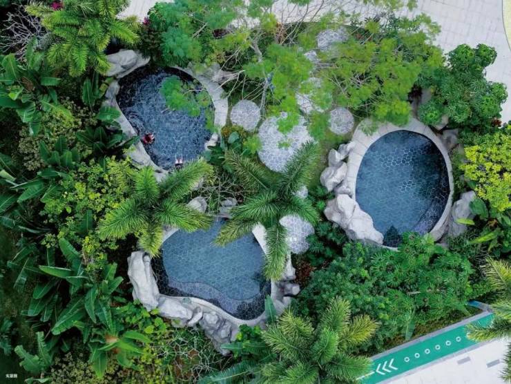 设计亮点:依山势错落布局,避免视野遮挡;园林融合五大雨林园区、热带植物;阳台温泉泡池 + 观景台一体化;全屋精装,品牌厨卫,中央空调,部分户型带飘窗;架空层设置九大主题乐活场景,适配老人小孩。