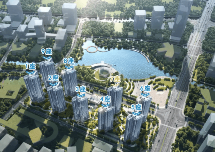 楼栋布局:共 9 栋 2 梯 4 户高层,蝶式 + 点式错位围合,全南向设计,超 80 米楼间距,高楼层享公园 / 湿地景观,采光通风与私密性俱佳。
