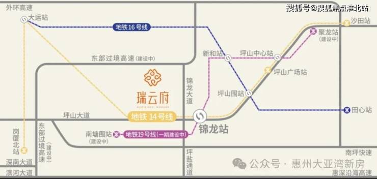地铁:14号线坪山锦龙站1.6公里(四站抵大运站、12站抵岗厦北站)、19号线人民医院站(深圳轨道五期建设)