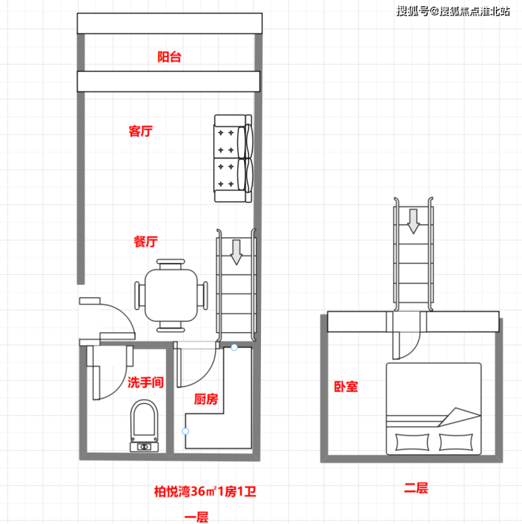 36㎡1房2庁1卫户型图