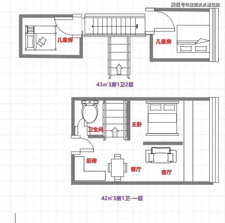 42㎡3房1卫户型图