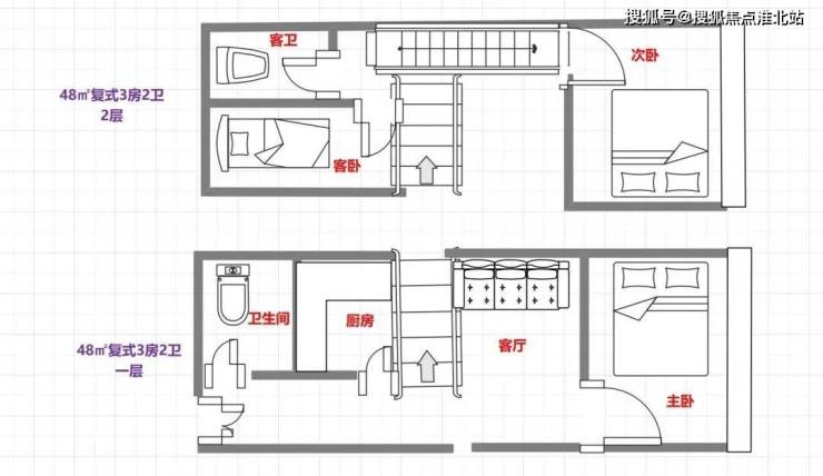 48㎡㎡3房2卫