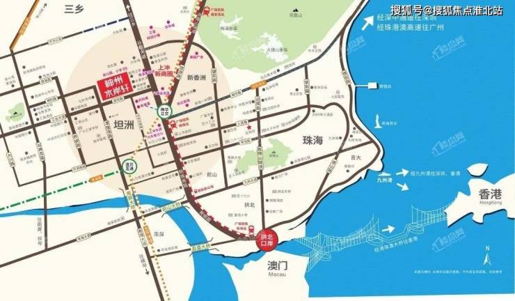 水岸轩地处南坦路居住换。紧邻轻轨明珠站,公交直通香洲、吉大、拱北、港珠澳大桥口岸,尽享三城便利。接驳沿海高速、京港澳高速、广珠西线高速入口,坐享粤港澳大湾区便利。