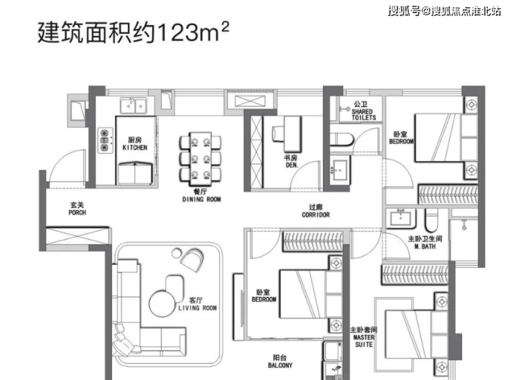 户型面积段有 98㎡、123㎡、143㎡、185㎡、195㎡、215㎡、258㎡,涵盖 3 房到 5 房户型,能满足刚改、改善等客户需求。