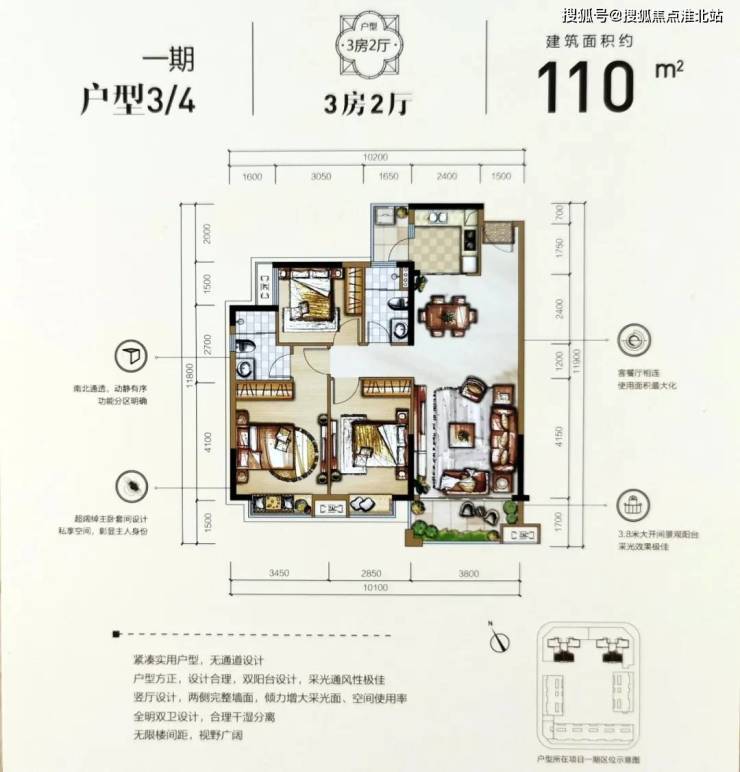 建面110㎡的三房对应的是3户型和4户型,属于紧凑实用户型,三房保证了相对充足的居住空间。