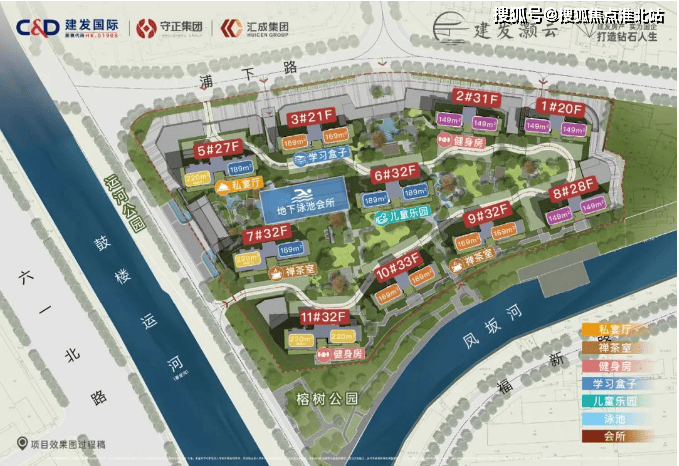 配套优势:教育资源丰富,约 300 米有福州市第一职工幼儿园,约 800 米有阳光幼儿园,约 1.2km 有教育学院附二小、约 2.4km 有鼓楼一小、约 1.7km 有福州实小、约 1.4km 有格致中学等。此外,被晋安河和凤坂河(化工河)两面环绕,有一定的景观资源,且受城市主干道噪音影响较小。