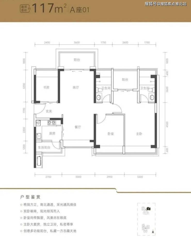 :总价309万起,次卧面宽仅2.5米,需封阳台改造功能性空间;