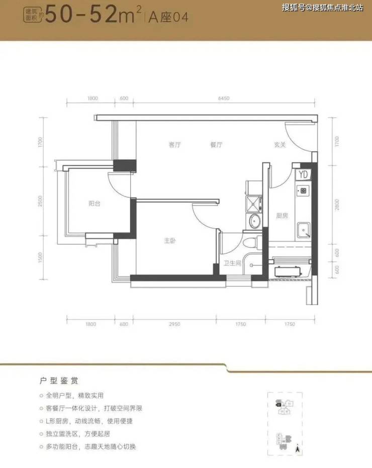 2、【户型】南山目前唯一在售50㎡户型,总价门槛低,虽然是一房一厅,阳台面积比较方正,可改小2居室,适合在南山工作的小两口,或三口之家。