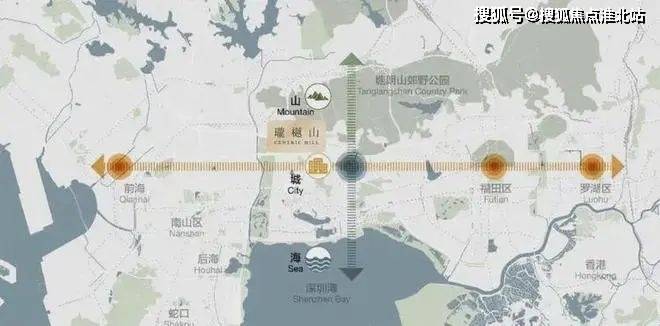 中心区域:深圳山海城中轴,左手香蜜湖、右手华侨城,六大总部基地环伺