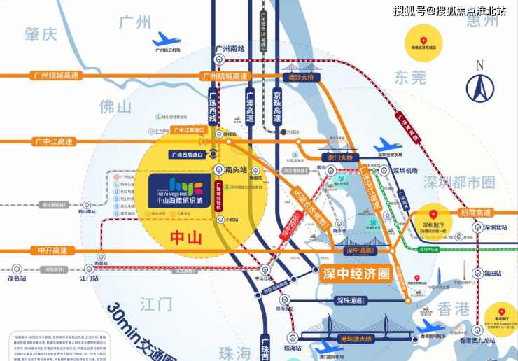 项目直连广珠城轨南头站,真正“轻轨上盖”物业,1站广州南、3站香港西九龙。项目百米内对接广珠西线广中江双高速南头站出入口,约10分钟直达顺德大良,20分钟直达广州、中山、江门城区,40分钟抵达深圳,实现1小时广深港中都市生活圈。