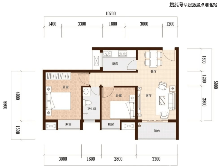 D建面约 84㎡ 两室两厅一卫