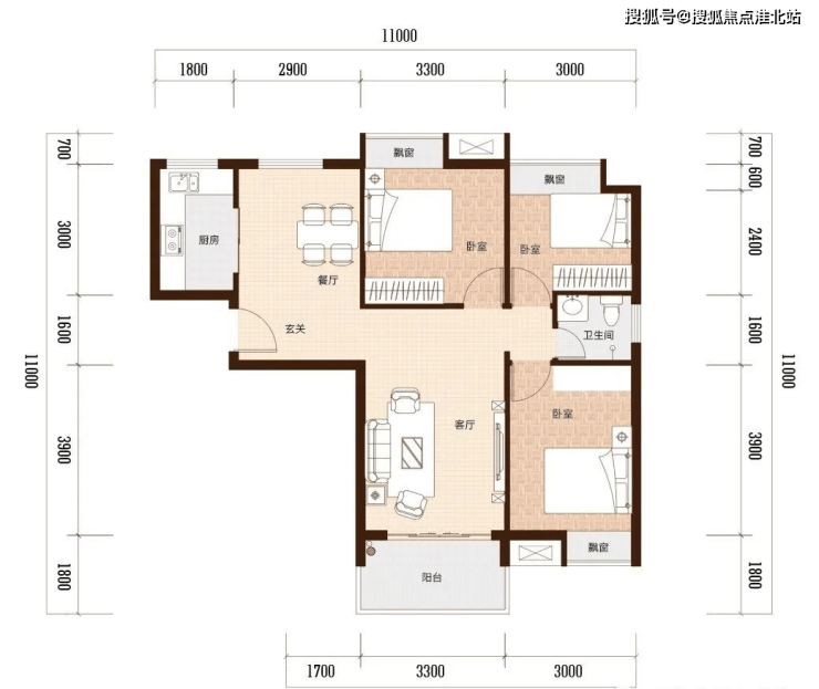 I 建面约 97㎡ 三室两厅一卫