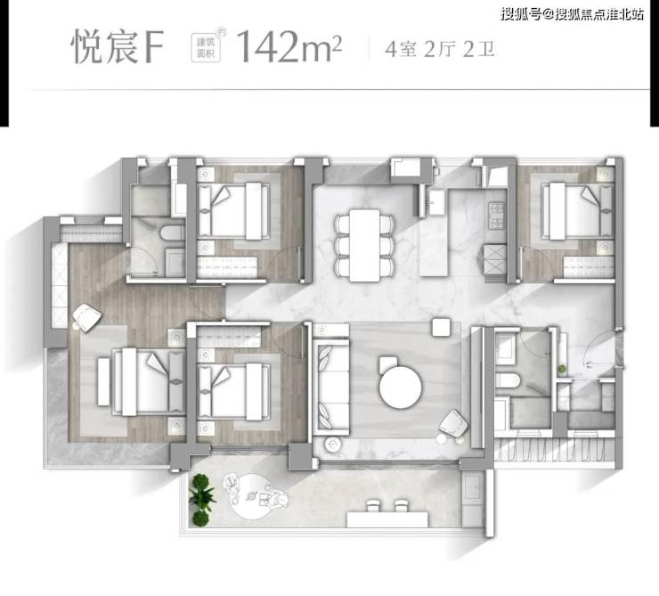 【悦宸F户型 建面约142㎡】