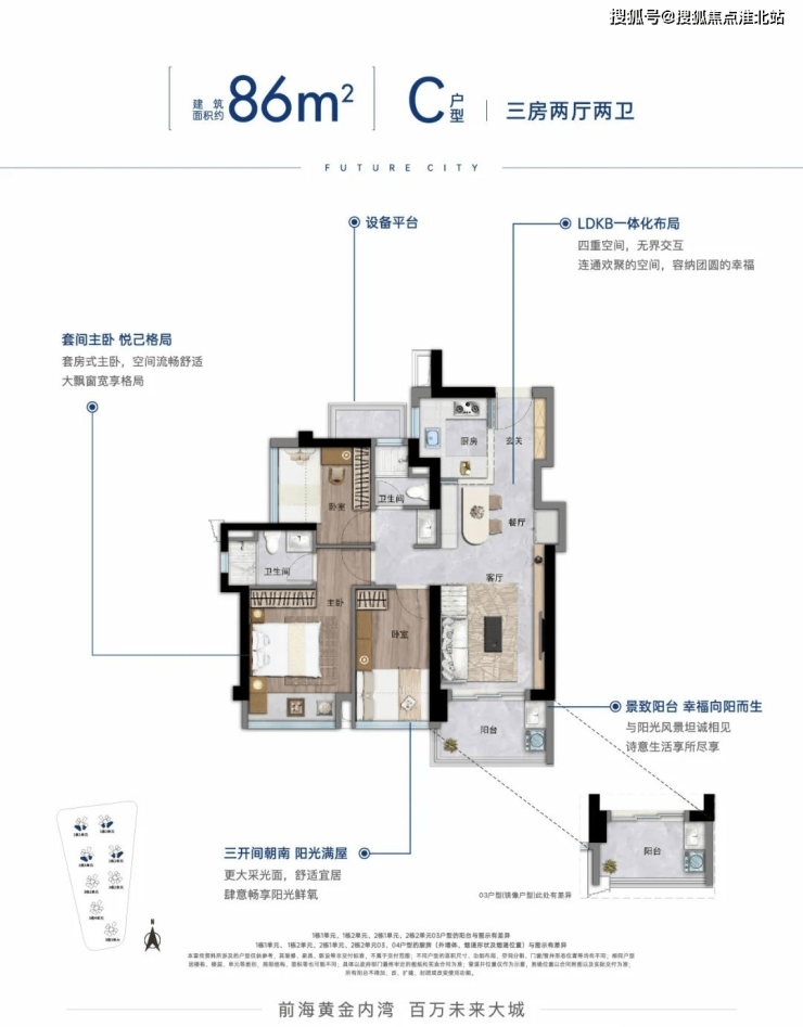 户型面积:63/76/86/113平(二至四房)
