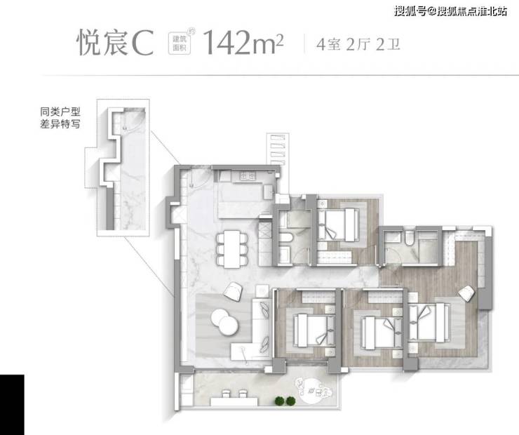 厅卧空间灵活改造约8.4米双面宽阔景阳台,匹配全生命周期使用