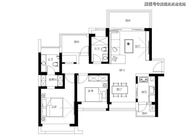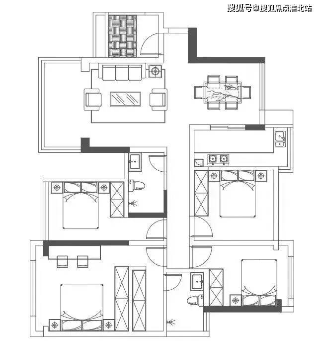4、餐客联厅设计,动静分区,户型方正