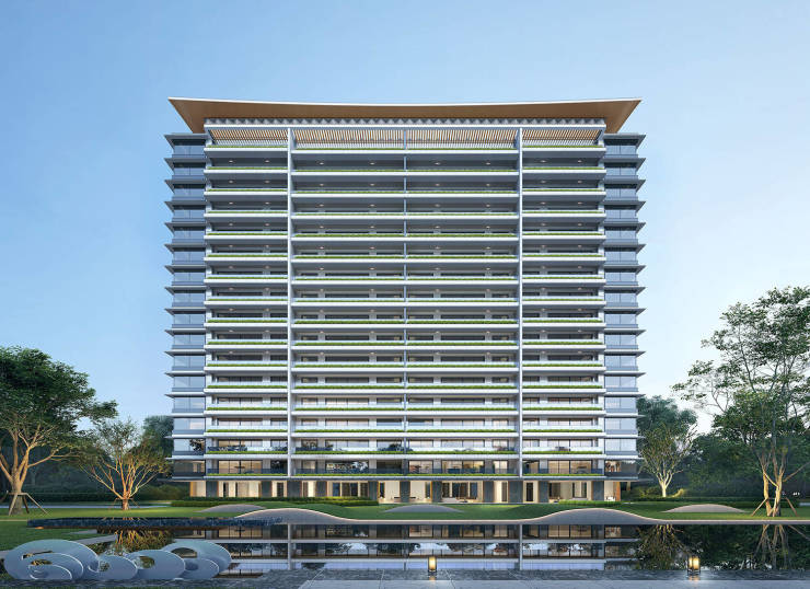 总占地约 56 亩,总建面约 12.8 万㎡;容积率2.5,绿化率40%;规划 9 栋 16-17 层纯板式高层,总户数 600 户,车位 879 个,车位比达1:1.5;社区配近 44 亩海心公园式园林、约 3000㎡高端业主会所(含私宴厅、健身房、瑜伽室、书吧等);纯板楼设计,一梯一户 / 两梯两户,独立电梯厅入户,标准层高约 3.1 米,外立面采用铝板 + 类玻璃幕墙 + 石材组合。