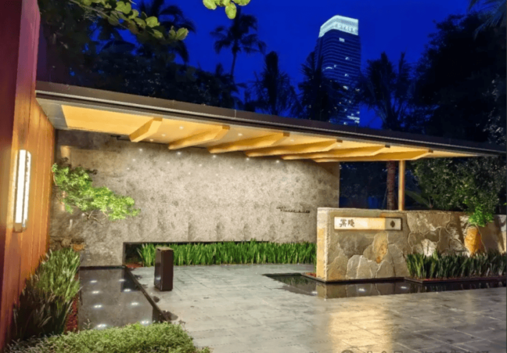 园林景观:园林设计以杭州法云安缦为蓝本,选用 40 种热带特色植被,还保留了原地块 4 棵百年古树作为核心景观节点,营造出宁静深邃、自然野趣的园林氛围。